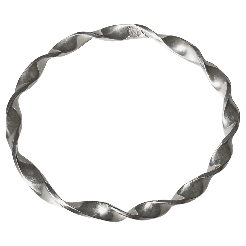 This silver bracelet, adorned with a flowing spiral design, is a sophisticated blend of modern aesthetics and timeless craftsmanship. Created in Taxco’s iconic Spratling Silver workshop, it’s perfect for adding a distinctive touch to any ensemble.