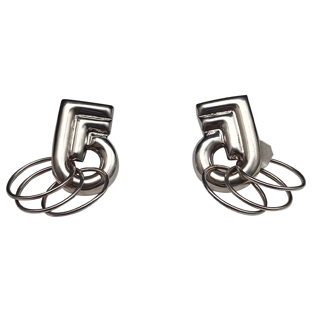 Estos aretes de plata presentan una elegante disposición de anillos en la base, creando un look en capas elegante y versátil. Elaborados a mano en Taxco, Guerrero, representan el legado artístico de William Spratling.